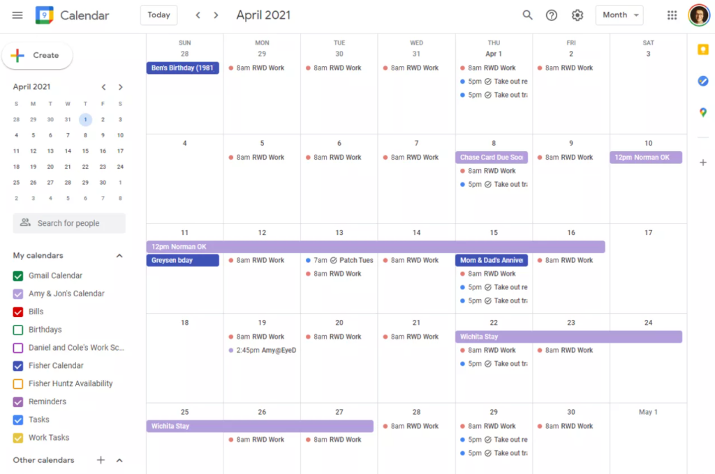 1) Agenda – Google Calendar