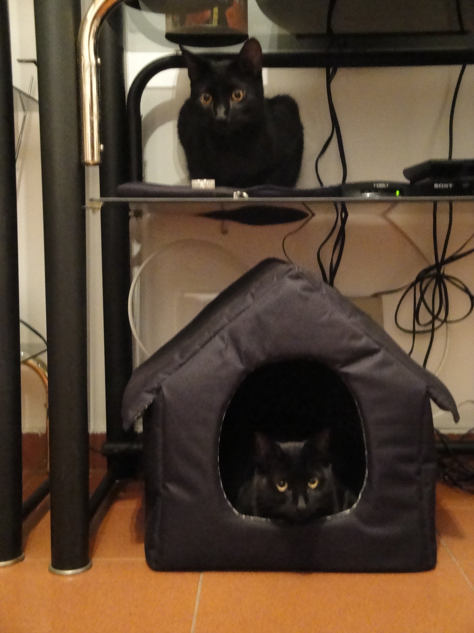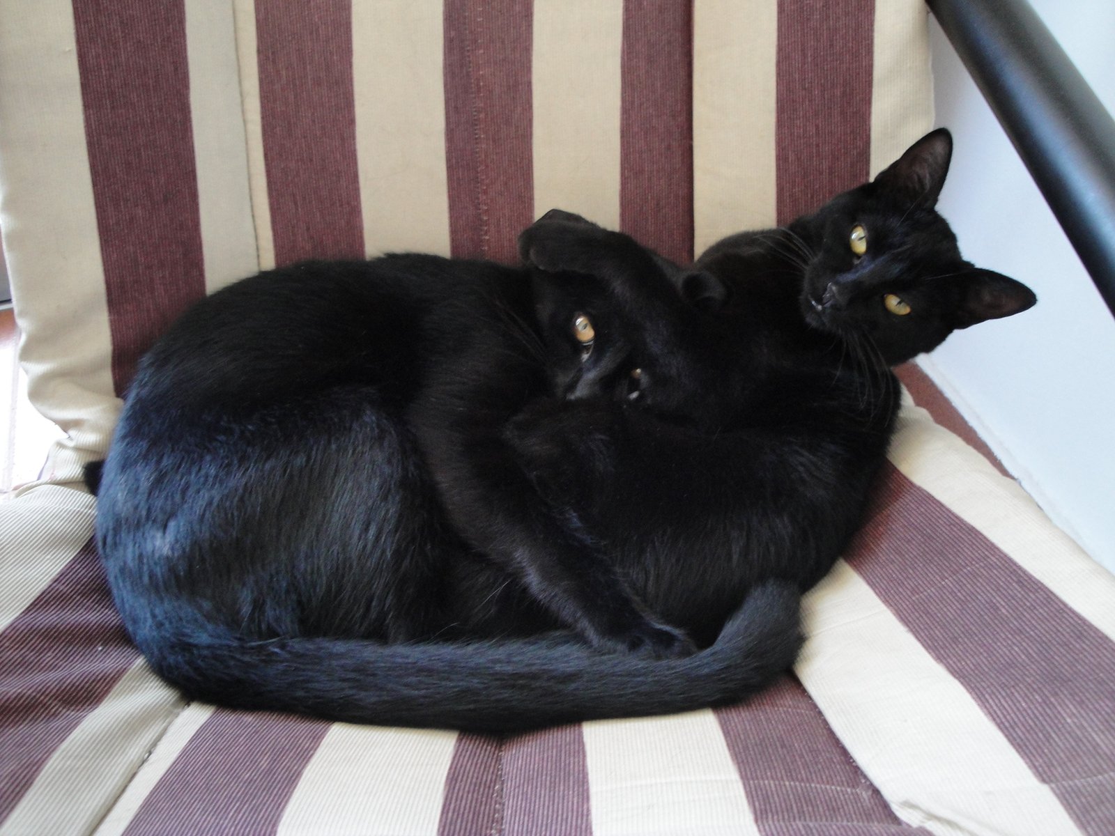 Meus dois gatinhos pretos não me deram azar nenhum. Também não me deram sorte. O que eles me dão todos os dias é muita alegria, além de afeição e companheirismo.