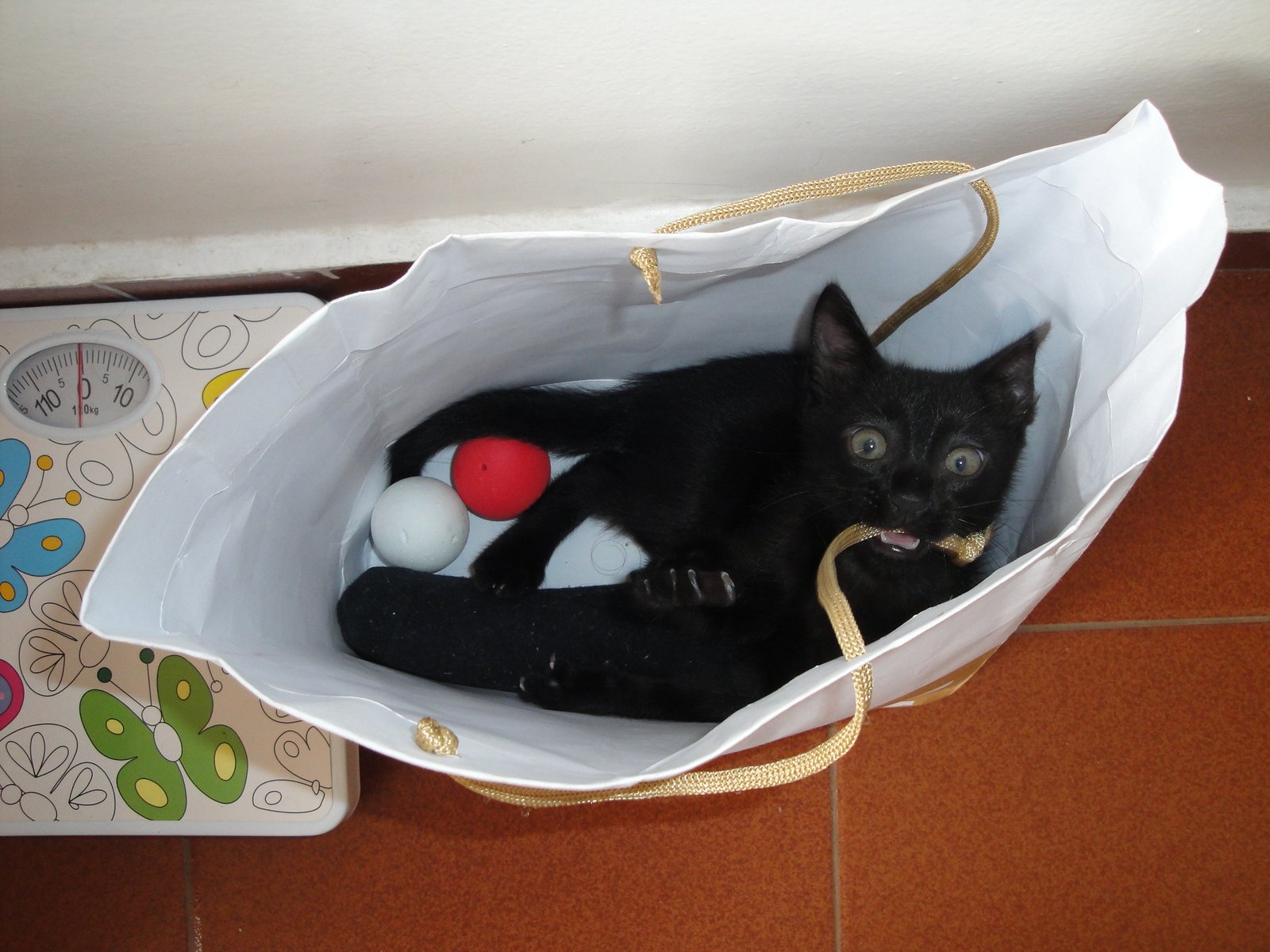 Como trabalho o dia todo, sempre pensei em ter mais de um gatinho, que fariam companhia um ao outro. (Quando gatos se dão bem, viram os melhores amigos.) Mas o apartamento era pequeno… O Biju tinha toda a fofura de um filhote, mas em alguns momentos mordia e arranhava muito. Preocupada, pesquisei sobre o assunto em páginas sobre pets na internet. Lá encontrei a explicação: gatos filhotes gostam de brincar de “luta” e, se não brincam com os irmãozinhos quando pequenos, não aprendem a medir a força das mordidas e arranhões. Assim, a solução era simples: adotar mais um gato!