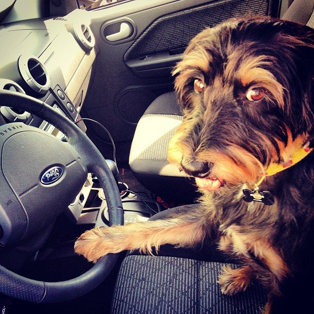 Quem viaja de carro precisa estar atendo as normas do DETRAN, que proíbe que o animal viaje no banco da frente. Se ele se assustar com alguma coisa, pode pular no colo do motorista e causar acidentes. No banco de trás o mais indicado é que vá na casinha de transporte, a gente até pode achar cruel mas em caso de acidente pode salvar a vida dele.