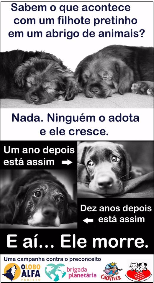 Por que uma pantera negra é linda e o gato preto traz azar? E os cachorros pretos, por que não são adotados? O assunto é tão sério que um grupo de ONGs, incluindo O Lobo Alfa Projeto, se reuniu e fizeram a seguinte campanha: