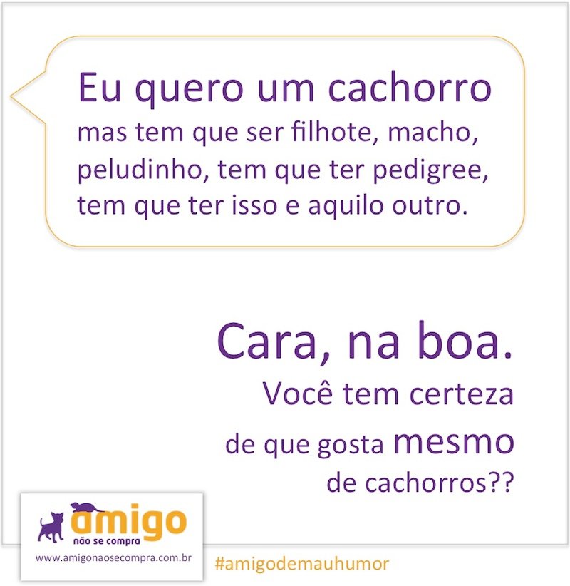 Quem gosta de cachorro MESMO, gosta de TODOS os cachorros! Adotar não é comprar de graça. É mudar a vida de um bichinho que precisa de carinho e cuidados.