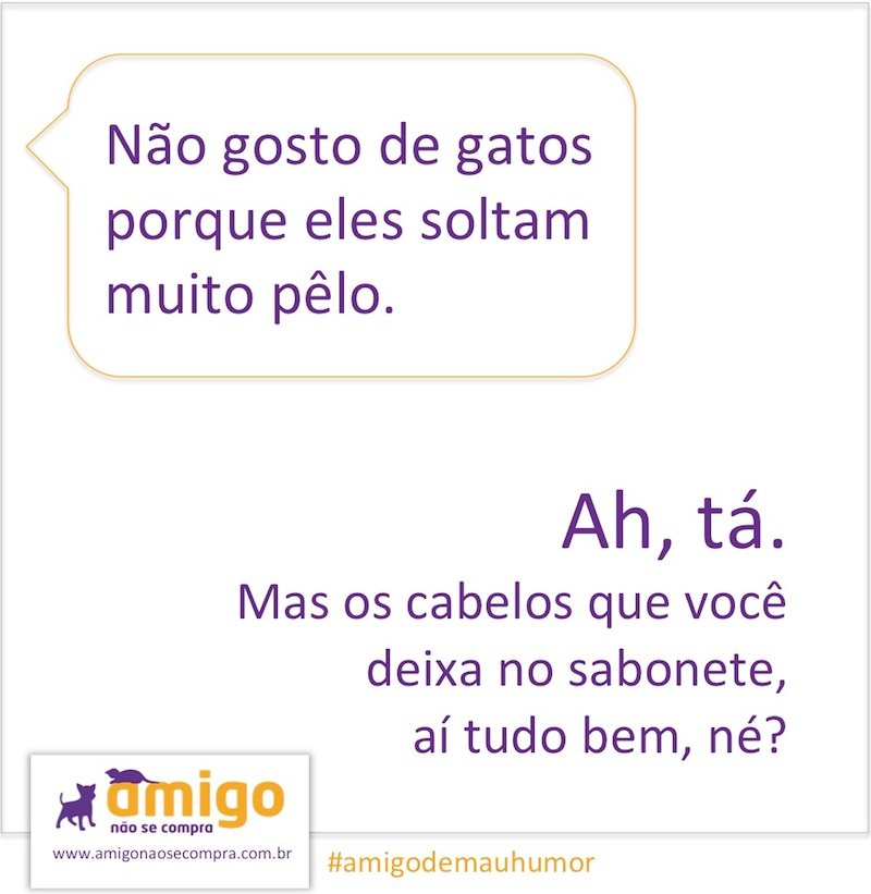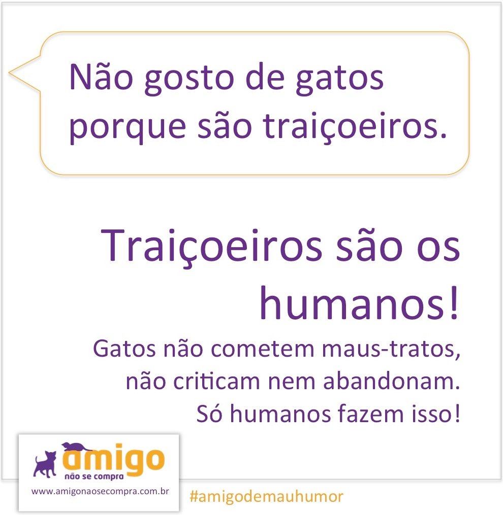 – Traiçoeiros são os humanos! Gatos não cometem maus-tratos, não criticam nem abandonam. Só humanos fazem isso!