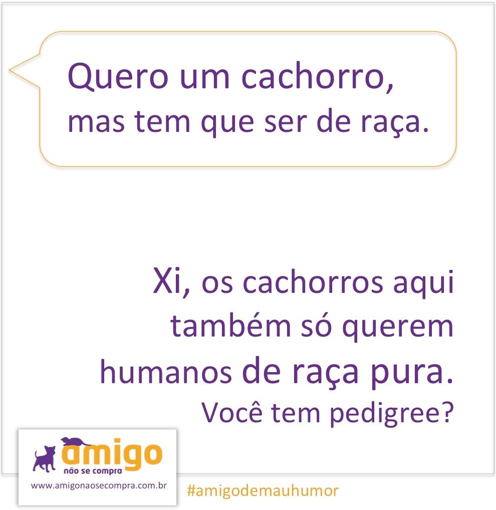 – Xi, os cachorros aqui também só querem humanos de raça pura. Você tem pedigree?