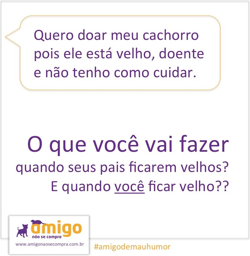 Seja leal! Não abandone seu amigo no momento em que ele mais precisa de você. Aliás, aqui tem um post sobre as vantagens de conviver com um animal idoso e aqui tem um depoimento sobre as delícias de conviver com uma gatinha idosa.