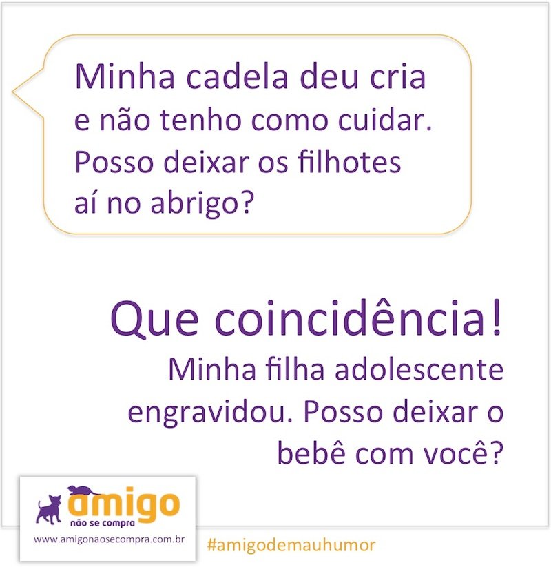 Se sua cadela ou gata teve filhotes, é responsabilidade SUA conseguir novos lares para eles! Mas nós podemos te ajudar nessa tarefa: divulgue os bichos aqui no www.amigonaosecompra.com.br. Além de divulgá-los, você encontrará dicas de como achar um bom adotante.