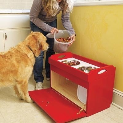 Esse além de bonito, ainda conta com um espaço para armazenar a ração do seu filhote.