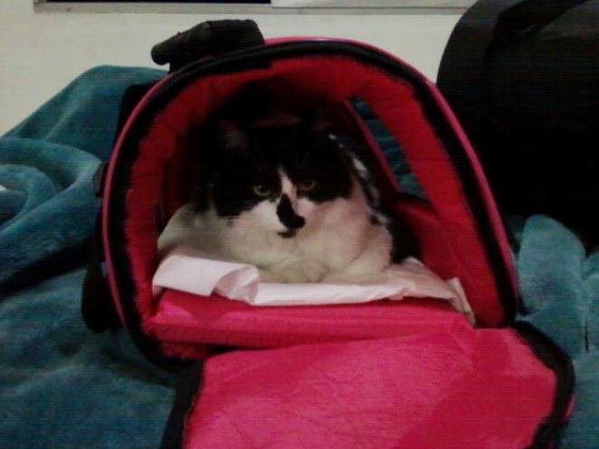 Acrescentamos as dicas sobre passar com gatos no detector de metais, que a Sonia Regina Grella publicou em nossa página do Facebook! Ah, e essa gatinha dormindo na maletinha rosa é a gatinha dela, a Kity, conhecendo sua malinha dias antes de pegar o avião. Não é uma graça?